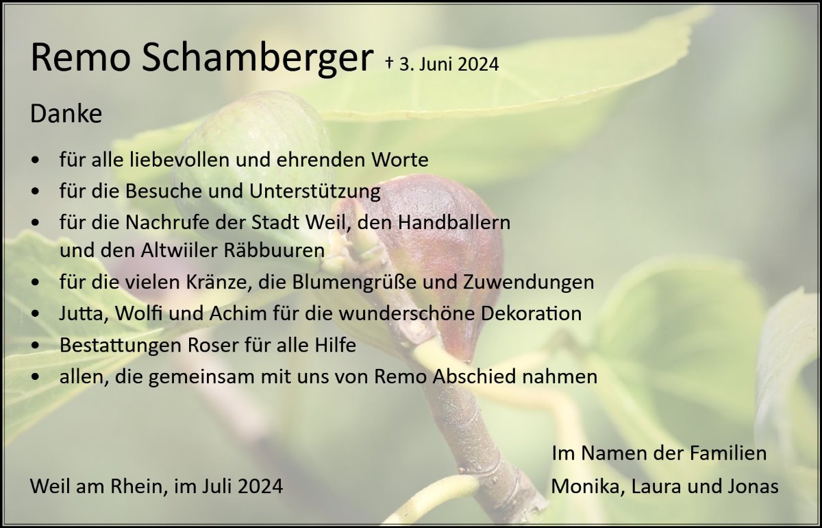 Remo Schambergergestorben am 3. Juni 2024