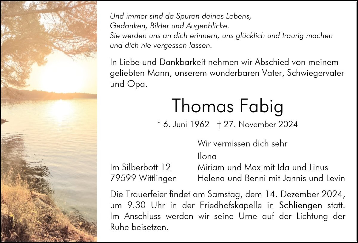 das die guten Erinnerungen an Thomas einen Halt bieten