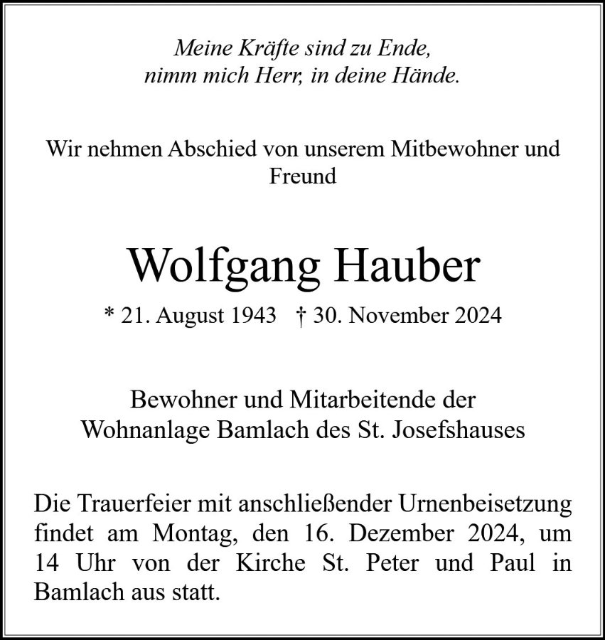 Urnentrauerfeier, kath. Kirche Bamlach